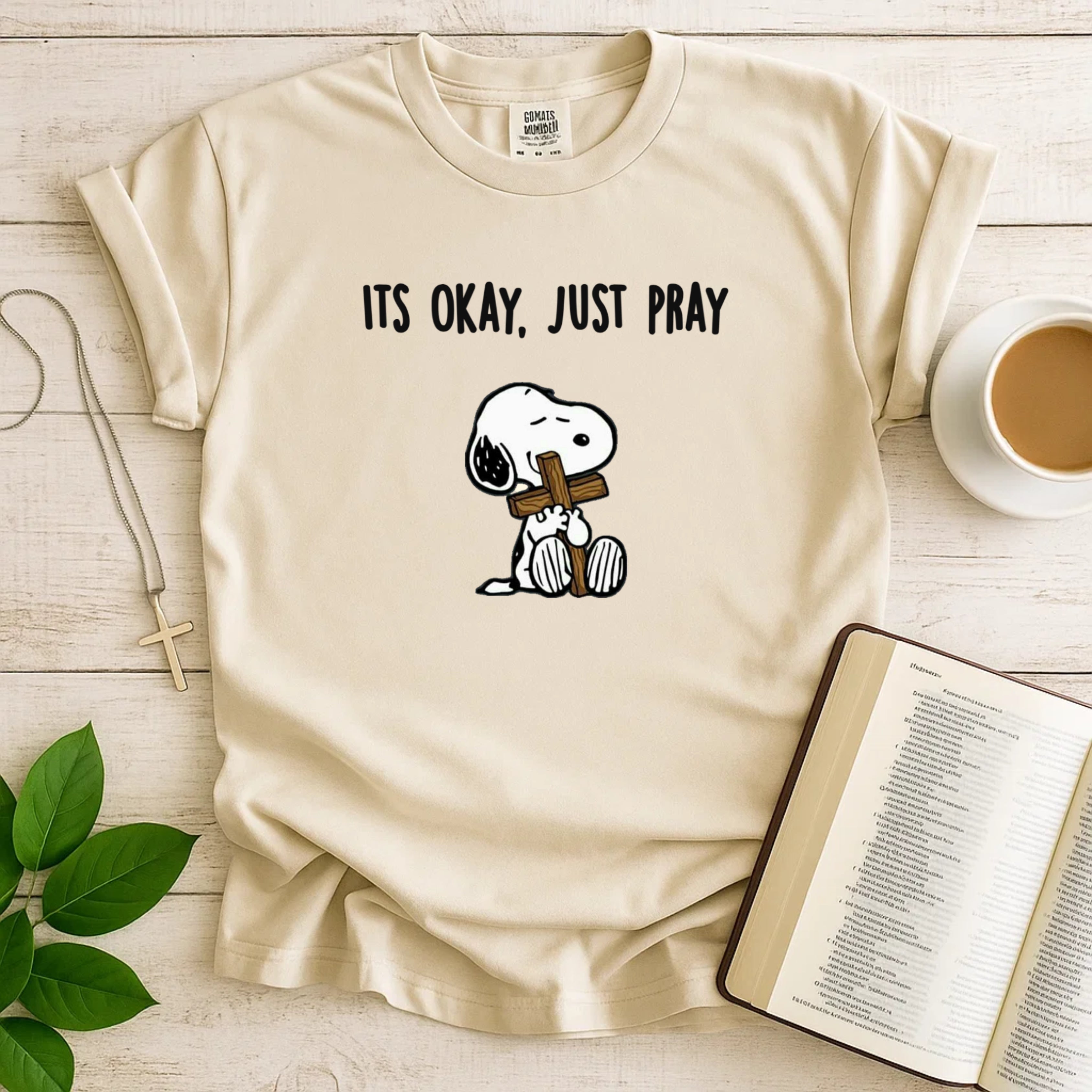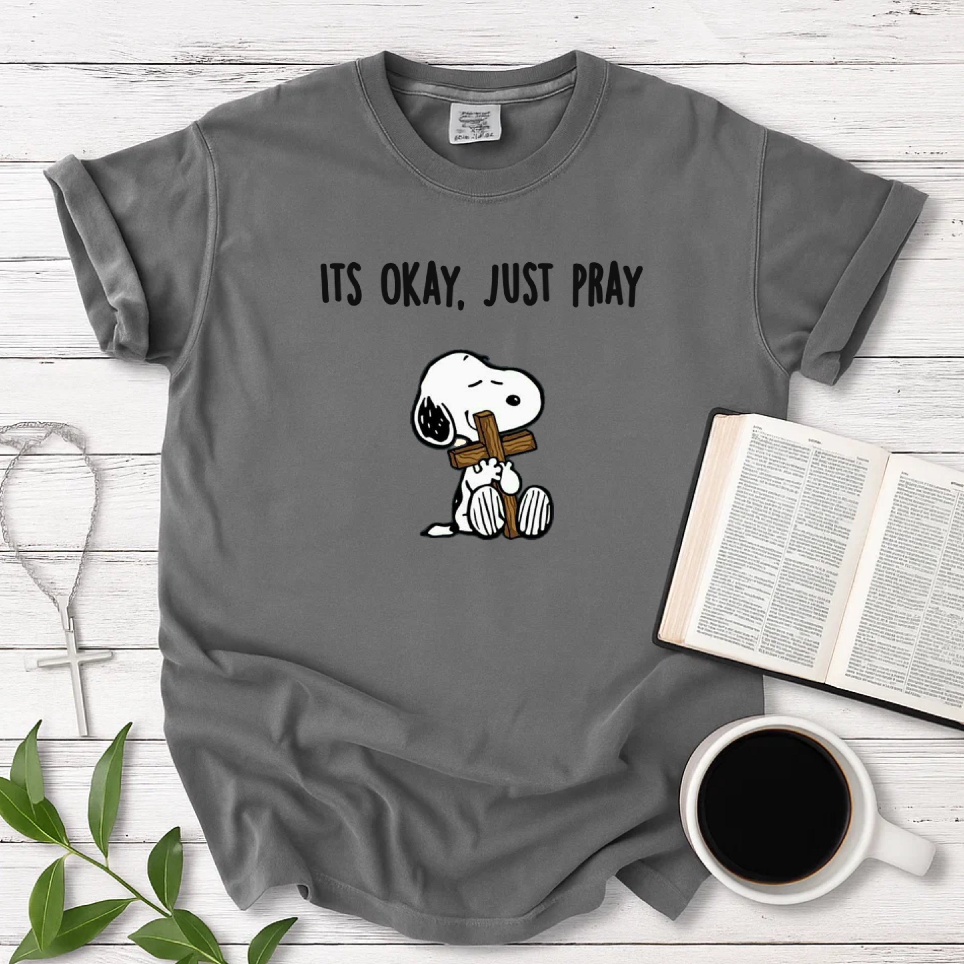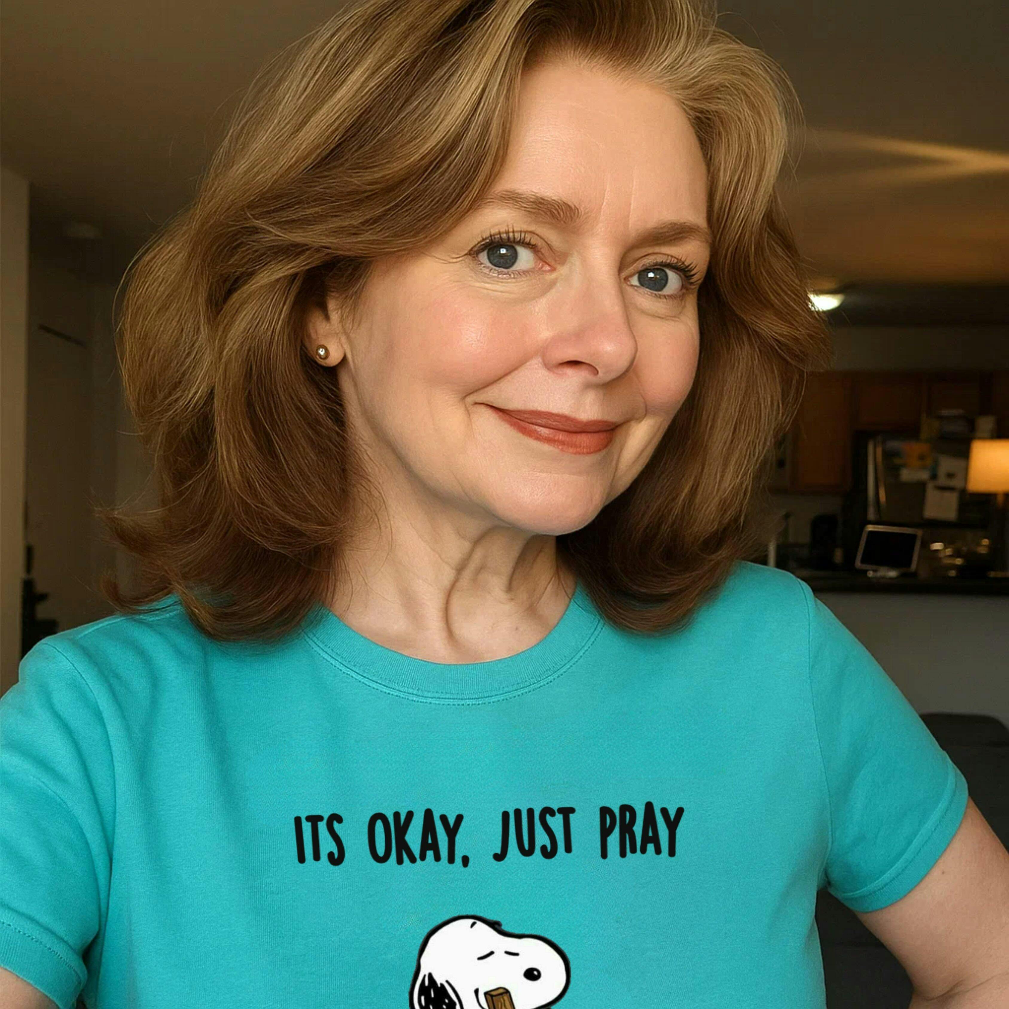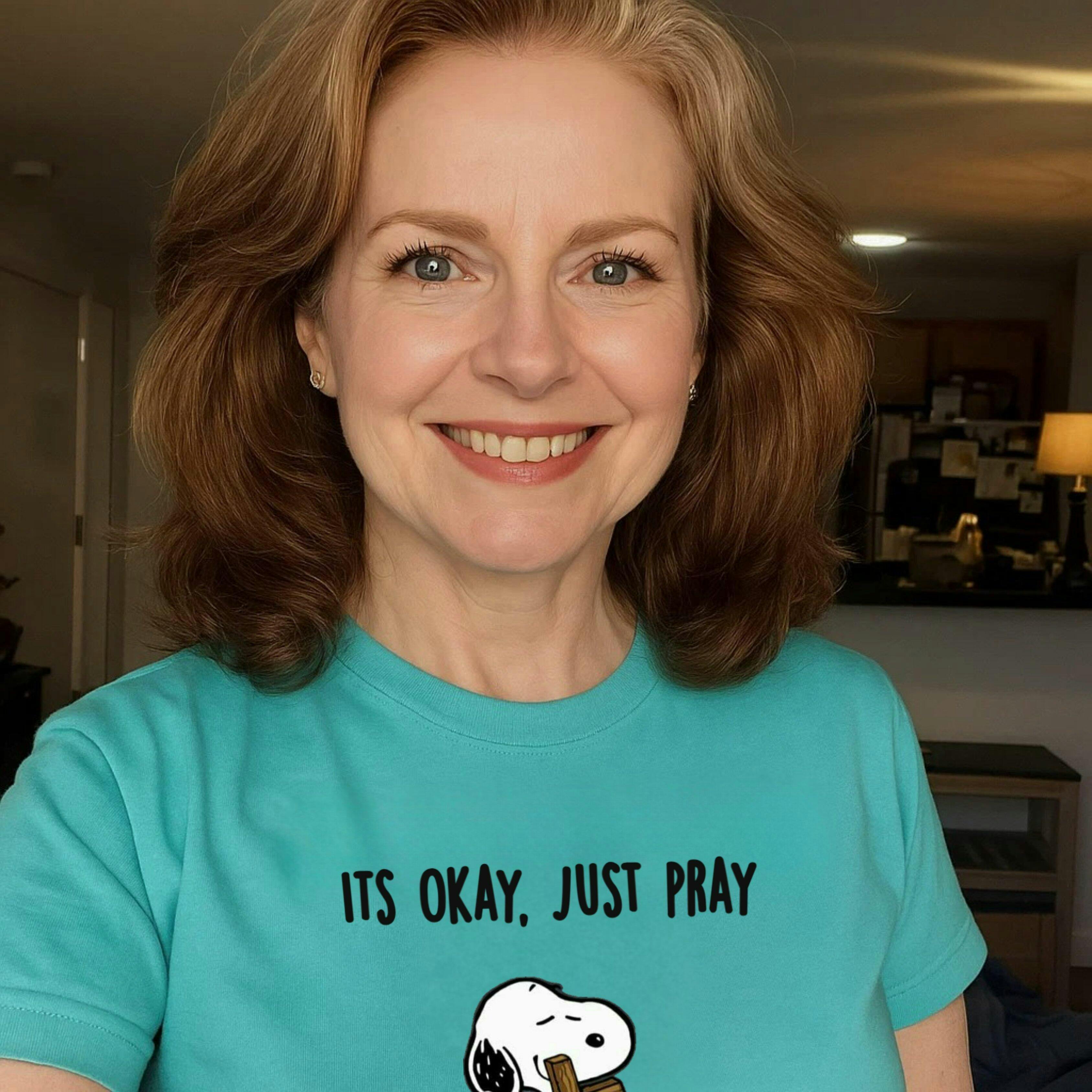 Design: Snoopy illustration with “It's Okay, Just Pray” text