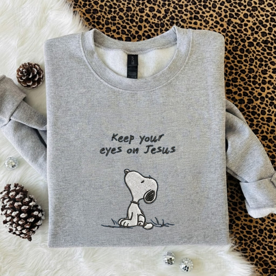 Keep Your Eyes On Jesus Embroidered Sweatshirt