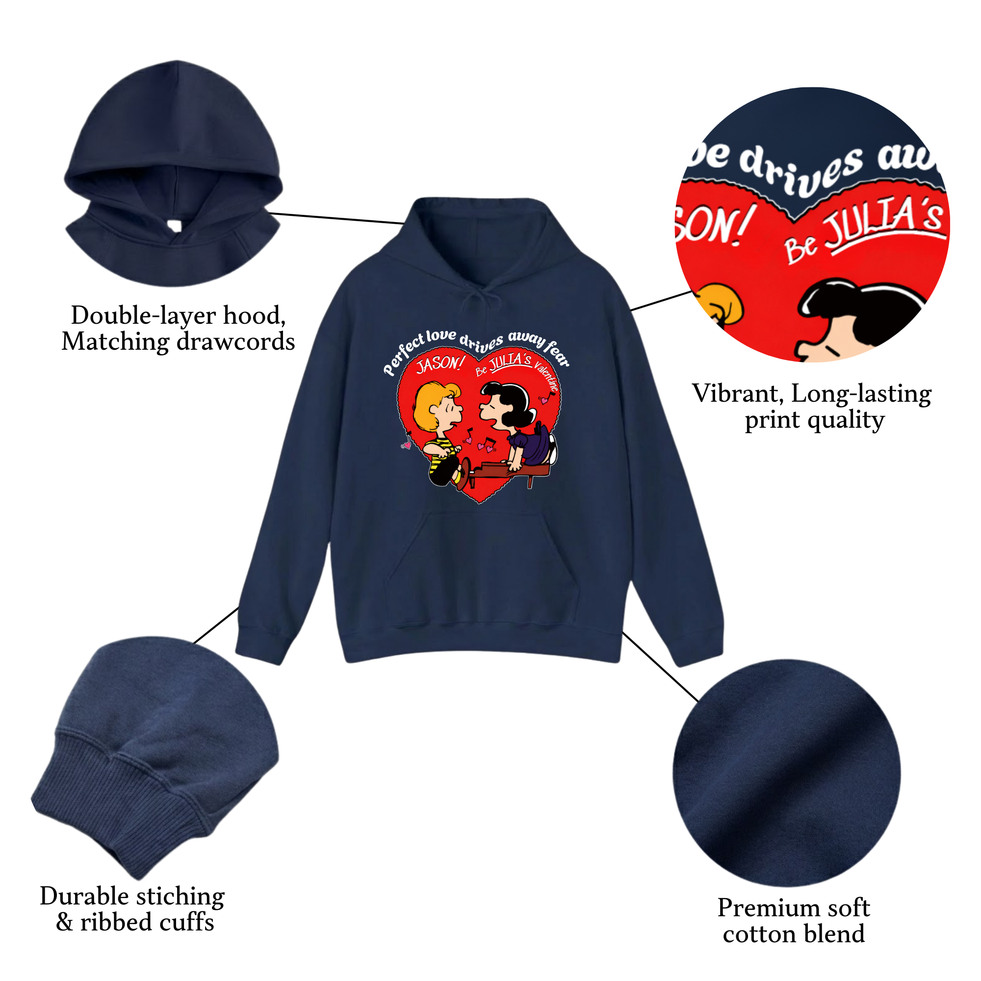 Material: 50% U.S. cotton, 50% polyester for a soft, durable feel with reduced pilling